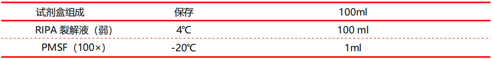 1.用户可根据不同细胞蛋白的溶解程度自行选择强、中、弱三种裂解液。